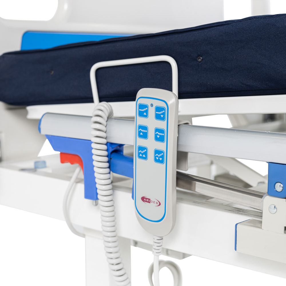 Все регулировки выполняются с помощью проводного пульта управления, разработанного с учетом потребностей лежачих пациентов. Кнопки имеют наглядные обозначения функций, что делает использование интуитивно понятным.