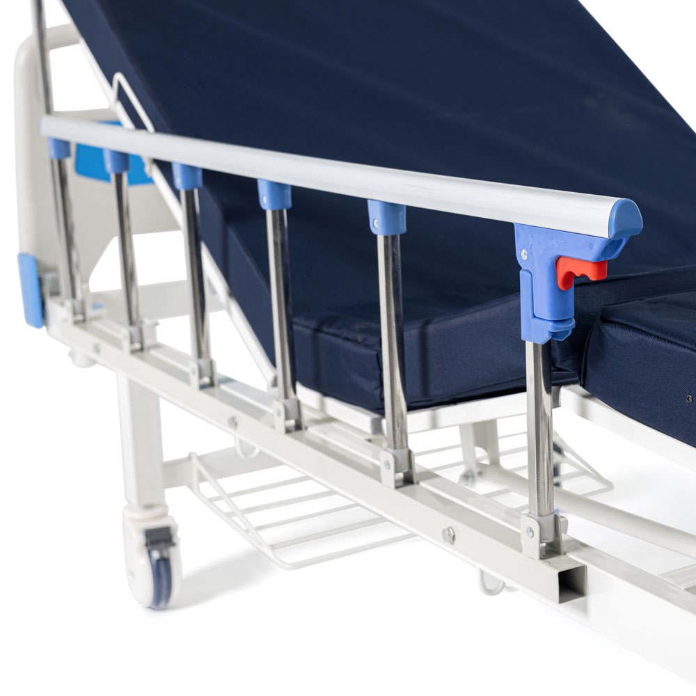 Основание кровати выполнено из прочной стали и рассчитано на нагрузку до 250 кг, что позволяет комфортно размещать пациентов с разной комплекцией. Габариты кровати приближены к стандартной односпальной модели.