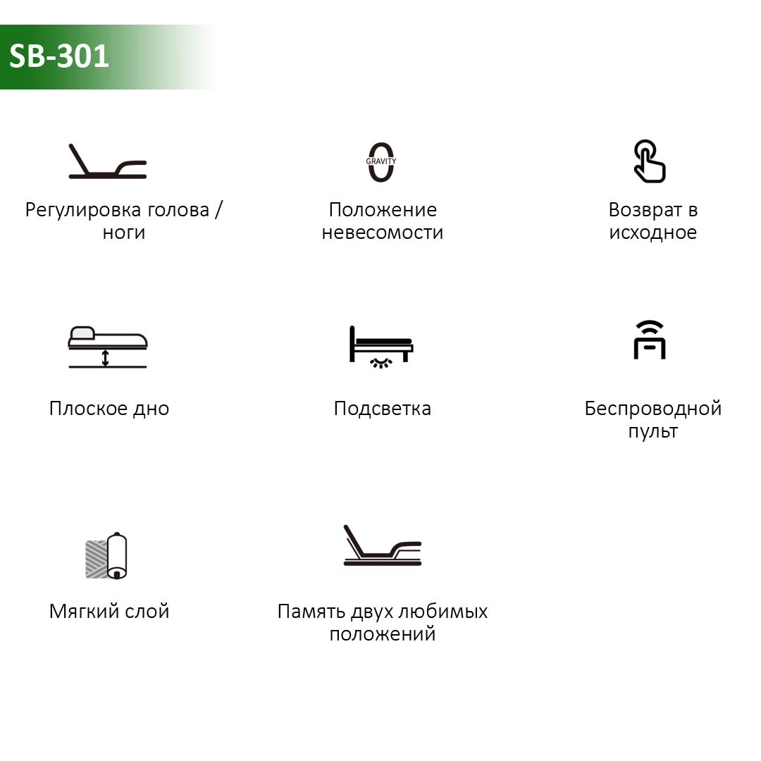 SB-301 отличный выбор для тех, кто хочет добавить функциональности в спальню, создавая индивидуальные условия для качественного отдыха и сна.